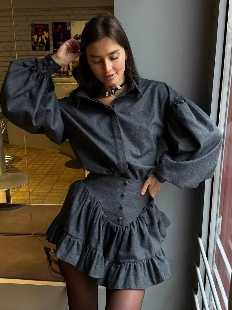 Un ensemble 2 pièces tendance composé d’une chemise ample à carreaux et d’une mini-jupe taille empire. Confortable et stylé, il est parfait pour un look décontracté chic en toutes saisons.