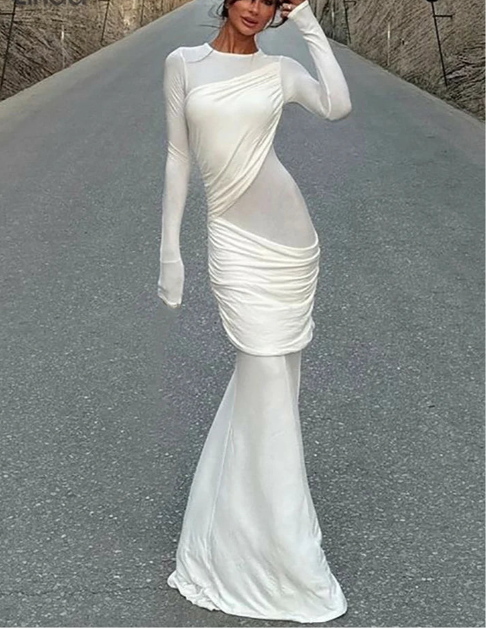 Élégante et moderne, cette robe longue ajustée met en valeur la silhouette grâce à sa coupe slim et son tissu légèrement extensible. Parfaite pour vos soirées d’automne, vos looks chics en ville ou un dîner sophistiqué.